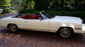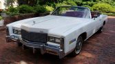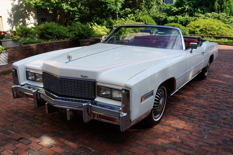 This 1976 Cadillac Eldorado convertible is finished in white over red upholstery and is powered by a fuel-injected 500ci V8 paired with a three-speed automatic transaxle. Equipment includes a white soft top, 15″ alloy wheels, chrome trim, power-adjustable front seats, power windows, automatic climate control, cruise control, and an AM/FM radio with an eight-track player. The car was reportedly sold new in California and relocated in 2016 to Tennessee, where it was acquired by the seller in…