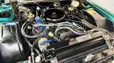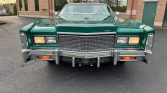 This 1976 Cadillac Eldorado Convertible is finished in Greenbrier Firemist over white Sierra Grain leather and is powered by a 500ci V8 paired with a three-speed automatic transmission. The car is equipped with a white soft top, four-wheel disc brakes, 15″ steel wheels, black wheel covers, a power-adjustable front bench, automatic climate control, automatic headlights, power windows, and an AM/FM stereo with an eight-track player.