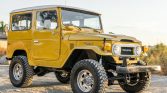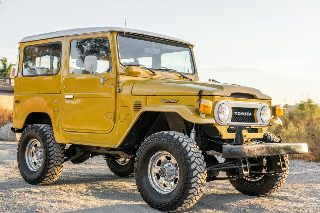 This 1976 Toyota Land Cruiser FJ40 is finished in yellow with a black roof over black cloth upholstery and is powered by a 4.2-liter inline-six paired with a four-speed manual transmission and a dual-range transfer case. Equipment includes disc brakes, a locking rear differential, and an Alpine cassette stereo. The truck was purchased by its current owner six years ago and subsequently received upgraded suspension components and a replacement carburetor, radiator, brake booster, brake master cylinder, clutch, fuel tank, and tires.