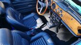 The bucket seats are upholstered in black vinyl with perforated inserts and are aLompanied by matching door panels, carpets, and a rear package shelf. Amenities include a wood-veneer dashboard with a locking glovebox, a heater, Triumph-branded floor mats, and a Retrosound multimedia stereo with a Kenwood amp and rear speaker enclosure. A replacement seat kit, seat foam, and one seat frame were installed in 2015 by British Auto Specialists of Calgary, Alberta.