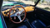 The car was finished from the factory in Java Green (85) and features a black soft top, a chrome bullet-style mirror, a front air dam, a luggage rack, bumper overriders, Union Jack flags on the rear quarter panels, and aftermarket H4 headlights.