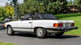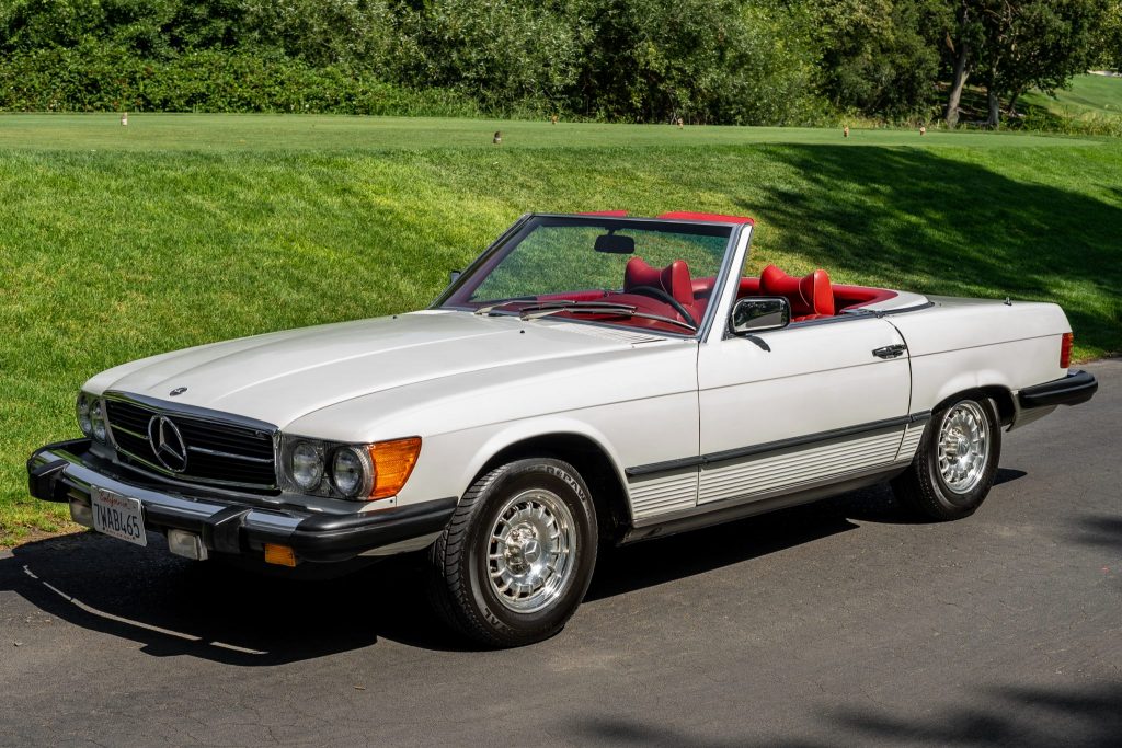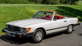 This 1977 Mercedes-Benz 450SL is finished in white over red upholstery and is powered by a 4.5-liter V8 paired with a three-speed automatic transmission. Features include 14″ wheels, a body-color removable hardtop, a black soft top, chrome trim, air conditioning, power windows, and a Becker cassette stereo. The seller acquired the car in 2016 from the reported original owner, and it now shows 89k miles.