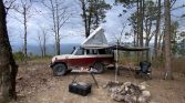 Gray-painted Smooth Vintique 16″ wheels from Summit Racing are mounted with 315/75 Yokohama G2003 tires. During its refurbishment the truck was fitted with 60-series FJ drag link and steering rods, a Dobinsons 20-way-adjustable stabilizer, Dobinsons IMS front shock absorbers and rear three-way-adjustable monotube remote-reservoir shock absorbers, and Old Man Emu leaf springs with 4 Plus shackle-reversal kits. The front axle was rebuilt with open 4.10:1 gears and the rear with TSM disc brakes and an ARB air locker.