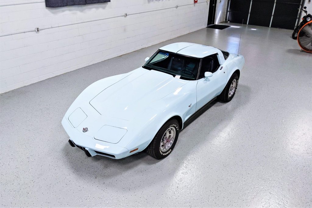 This 1978 Chevrolet Corvette is finished in Corvette Light Blue over Dark Blue leather, and it is powered by a numbers-matching 350ci L48 V8 paired with a four-speed manual transmission and a Positraction rear end. Features include a tilting and telescoping steering column, air conditioning, a Kenwood cassette radio, two sets of removable T-top roof panels, and 15″ alloy wheels. The car was repainted and the interior was refreshed during prior ownership.