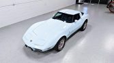 This example was delivered from the factory in Corvette Light Blue and repainted during prior ownership. Features include a fastback roofline with wraparound rear glass, pop-up headlights, fog lights, removable body-color roof panels, and dual exhaust outlets.