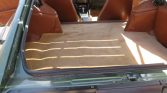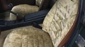 The seats are trimmed in tan patterned cloth with darker vinyl sides and backs. Amenities include air conditioning, crank windows, tan floor mats, and a Pioneer CD stereo.