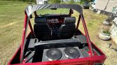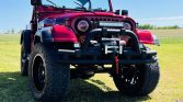 This 1978 Jeep CJ-7 was refinished in red metallic and fitted with a 5.3-liter GM V8 that is equipped with an ICT Billet intake manifold, a CVF Racing serpentine system, Hedman exhaust headers, and a Borla dual exhaust system. Power is sent to the rear or all four wheels through a three-speed TH350 automatic transmission and a dual-range transfer case, and additional features include power steering, power-assisted front disc brakes, gloss black 20″ Fuel Stroke wheels, double tube…