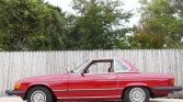 This 1978 Mercedes-Benz 450SL is finished in red over tan MB-Tex upholstery, and it is powered by a 4.5-liter V8 paired with a three-speed automatic transmission. Equipment includes a body-color hardtop, a black soft top, power windows, chrome-finished 14″ alloy wheels, and an older aftermarket Sony stereo. The car was acquired by the seller in 2018, and service in the last two years is said to have included overhauling the brakes and replacing the radiator, serpentine belts,…