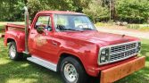 This 1979 Dodge Li’l Red Express truck is finished in red with gold graphics over black vinyl upholstery and is powered by a 360ci V8 paired with a three-speed automatic transmission. Equipment includes an oak-trimmed bed, vertical exhaust stacks, a chrome rear bumper, running boards, a hitch receiver, and a wood front bumper. The truck was purchased by the seller in 2002.