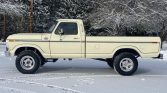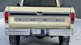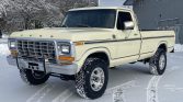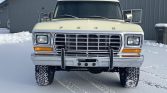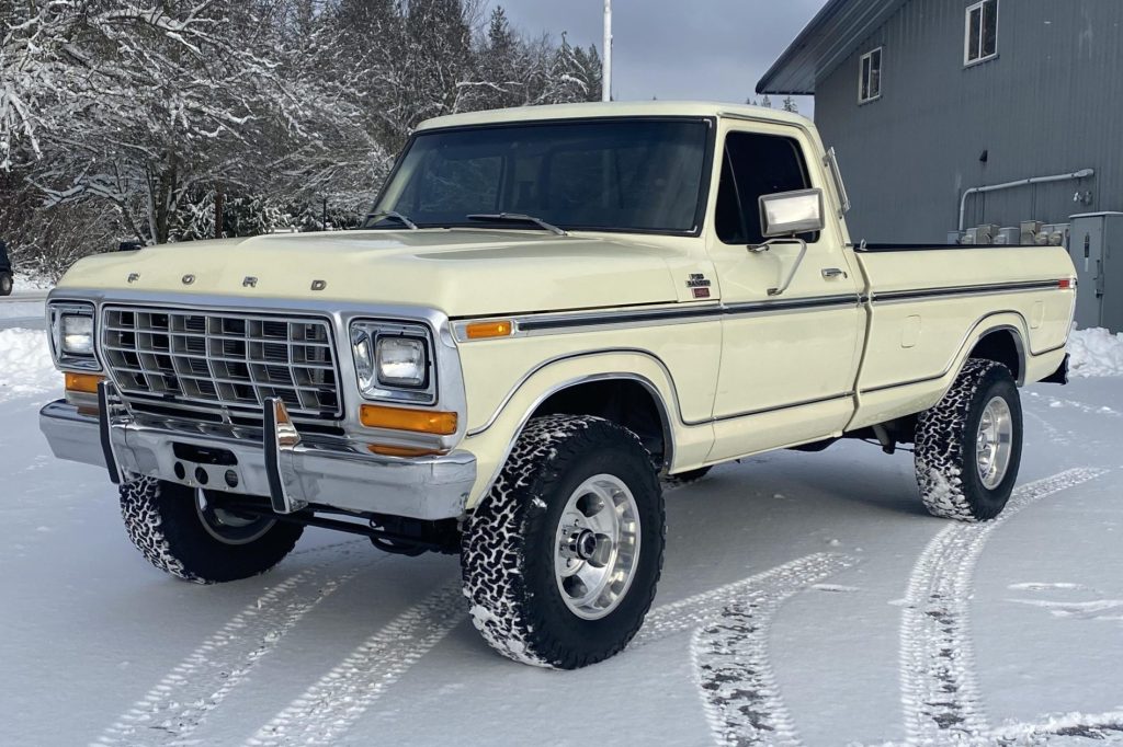 This 1979 Ford F-150 is a regular-cab 4×4 pickup that was modified under previous ownership with a 5.0-liter Coyote V8, a six-speed 6R80 automatic transmission, and a late-model Ford Super Duty two-speed transfer case. The truck is finished in beige over black and features a retrofitted air conditioning system, power steering and front disc brakes, 17″ US Mags wheels, a Ford Performance control pack, a Painless wiring harness, Dakota Digital VHX gauges, aftermarket audio components, and tinted windows.