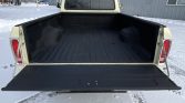 The cab has been covered in Kilmat sound deadener and houses a bench seat trimmed in black cloth and vinyl along with a matching dashboard, door panels, and carpets. Appointments include a Restomod Air Vapir 2 air conditioning system, faux wood accents, and an Alpine stereo that feeds Pioneer speakers as well as an 8″ subwoofer behind the seat.