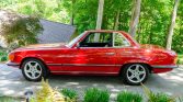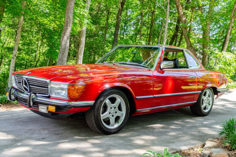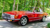 This 1979 Mercedes-Benz 280SL is a European-market example finished in red with a black soft top over black upholstery. Power is supplied by a 2.8-liter inline-six mated to a four-speed manual transmission, and additional equipment includes a stainless steel exhaust system, 16” five-spoke wheels, fog lights, a body-colored removable hardtop, a Nardi steering wheel, and a Sony stereo. The car was acquired by the seller in 2006 and underwent a repaint during 2016 and 2017, followed by fuel…