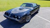 This 1979 Pontiac Firebird Trans Am is finished in black over beige and is powered by a 400ci V8 paired with a four-speed manual transmission. Features include the WS6 Performance and Handling Package, four-wheel power disc brakes, a rear spoiler, a shaker hood, Trans Am decals and striping, 15″ snowflake wheels, and an Alpine AM/FM/Cassette Stereo. The car was acquired by the current owner in 2016, and maintenance completed in preparation for sale consisted of a fluid service.