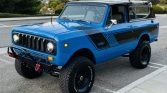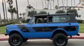 This 1980 International Harvester Scout II 4×4 is finished in blue with black accents over a black vinyl-trimmed interior and it is powered by a 345ci V8 paired with a three-speed automatic transmission and a dual-range transfer case. Features include a gloss-black removable hardtop, an aftermarket grille, Warn manually locking front hubs, Bilstein shocks, an Edelbrock carburetor, a heater, sliding rear windows, and a Kenwood CD stereo with Bluetooth connectivity and Kenwood speakers.