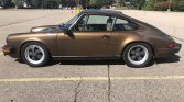 This 1980 Porsche 911SC coupe is powered by a 3.0-liter flat-six paired with a five-speed manual transaxle and is finished in Tobacco Metallic over tan leather upholstery. Features include the F26 option group, fog lights, a sunroof, power windows, and a Kenwood AM/FM/CD stereo.