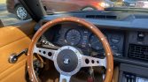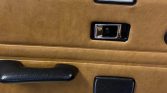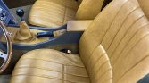 The car was delivered from the factory with Golden Tan Check (RAG) upholstery, and during current ownership the cabin was reupholstered with saddle seating surfaces, door panels and Wilton wool carpets. A Sony stereo has been fitted in the stock location, and a three-spoke Moto Lita steering wheel fronts the factory instrument binnacle. Shoulder belts are equipped for both occupants, and discoloration is visible on the sun visors.