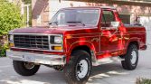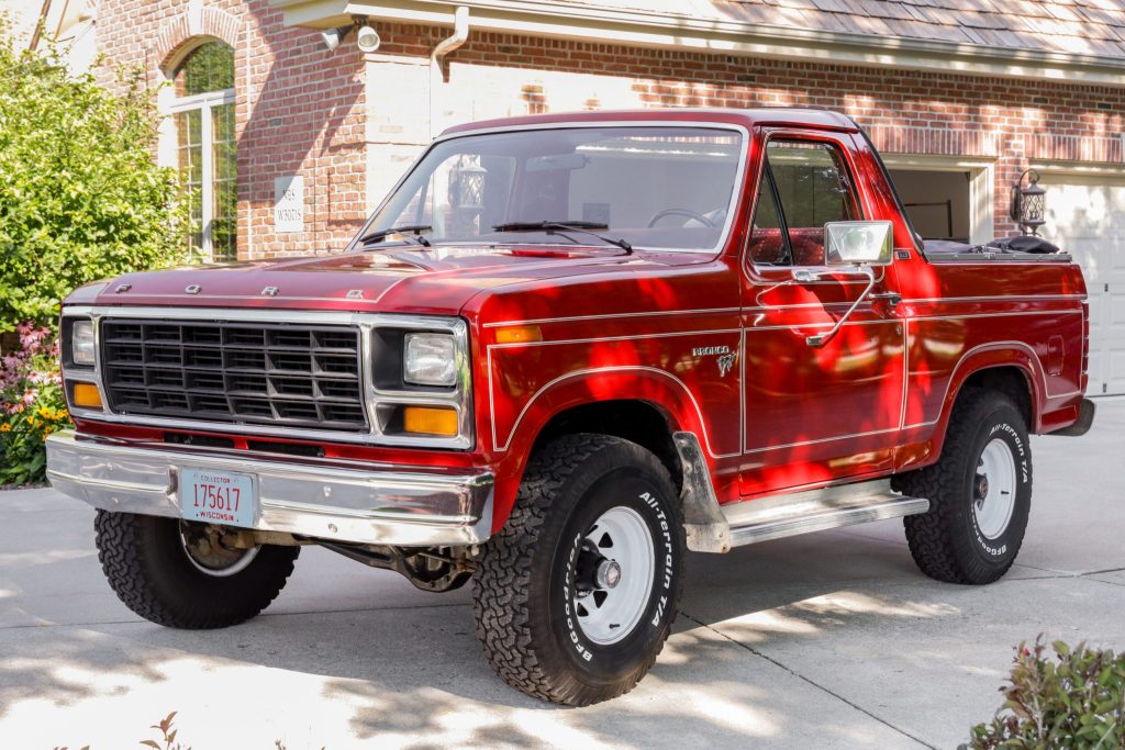This 1981 Ford Bronco XLT was first delivered new to Phillips-Long Ford Sales of Baker, Oregon, and was acquired by the seller in February 2011. It is finished in red over red cloth upholstery and is powered by a 5.8-liter V8 paired with a three-speed automatic transmission and a dual-range transfer case. Additional equipment includes a removable hardtop, 15″ steel wheels, the Free Wheeling Package A, the Handling package, air conditioning, cruise control, a rear window defroster, a flip-fold rear bench seat, a factory AM/FM/8-Track stereo, and a bed-mounted spare tire.