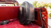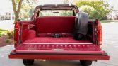 The truck is finished in Candyapple Red and features a red removable hardtop. Additional equipment includes a silver accent panel on the tailgate, a diamond-plated chrome rear bumper, running boards, a tonneau cover, a bed-mounted spare tire carrier, a power rear wind deflector, and a sliding rear quarter window.