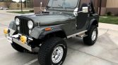 This 1981 Jeep CJ-5 was modified approximately 12 years ago, including a repaint in metallic green and the installation of an overbored 360ci AMC V8 that is paired with a four-speed manual transmission and a dual-range transfer case. The seller purchased it in 2020 and subsequently added off-road lights, a custom sound system, Bestop seats, Pro Comp wheels, and Bestop half-doors. Other features include Holley fuel injection, front and rear Detroit lockers, and an onboard air compressor. Service performed in preparation for the sale is said to have included changing the oil, transmission fluid, and transfer case fluid, as well as replacing the spark plugs and wires.
