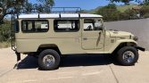 This 1981 Toyota Land Cruiser is a left-hand-drive troop carrier that was imported to the US from Costa Rica in 2015 under previous ownership. The truck was acquired by the seller later that year, reportedly following a repaint in beige and reupholstery of the interior in black and brown vinyl. Power is from a diesel inline-six mated to a four-speed manual transmission and a two-speed transfer case. Additional equipment includes a roof rack, chrome 15″ steel wheels, an…
