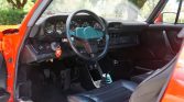 A three-spoke steering wheel sits ahead of VDO instrumentation which includes a central tachometer with a 6,300-rpm redline as well as an 85-mph speedometer, an analog clock, and combination gauges. The six-digit mechanical odometer shows just 20k miles.