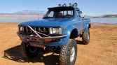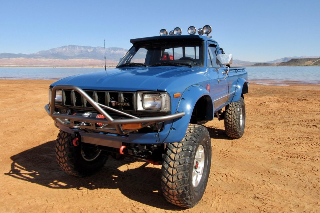 This 1982 Toyota 4×4 Pickup is finished in blue with silver graphics over black leather and is powered by a 2.4-liter inline-four mated to a five-speed manual transmission and a dual-range transfer case. Modifications consist of Locktup front and rear bumpers, a Rugged Trail suspension lift, 16″ alloy wheels, a roll bar with KC lighting, a winch, and Bushwacker wheel arch flares. The truck spent time in Pennsylvania and Ohio prior to the seller’s recent acquisition, and subsequent maintenance is said to have involved replacement of the brake pads, rotors, and master cylinder.