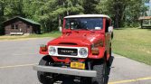 This 1982 Toyota Land Cruiser BJ42 is a left-hand-drive example that was imported into the US in the early 1990s from British Columbia, Canada, and has since spent time in Connecticut and New York. The truck is finished in red over gray and is powered by a 3.4-liter diesel inline-four paired with a four-speed manual transmission and a dual-range transfer case. Equipment includes an Aqualu aluminum tub, rear jump seats, locking front hubs, a cabin heater, a…