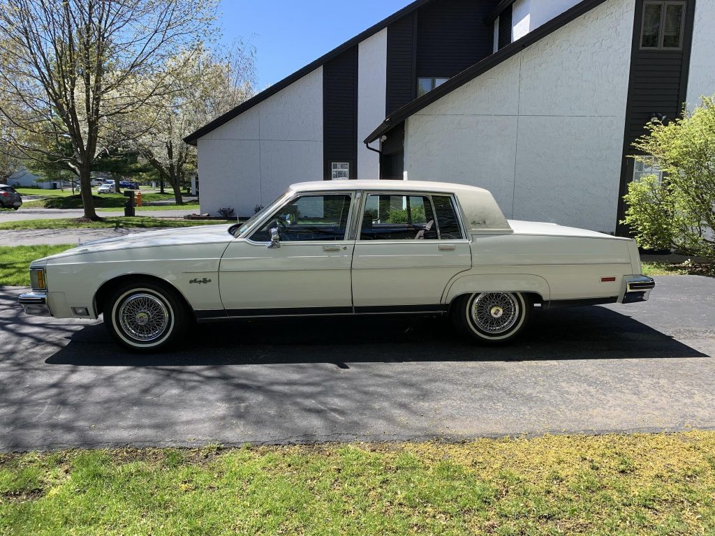 This 1983 Oldsmobile 98 Regency Brougham was purchased new by the seller’s late mother and has resided in New York from new. The car is finished in white over a burgundy cloth interior, and power comes from a 5.0-liter V8 paired with a four-speed automatic transmission. Equipment includes a white vinyl top, power aLessories, a tilt steering wheel, air conditioning, cruise control, a remote trunk release, and an AM/FM/cassette stereo.