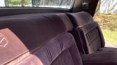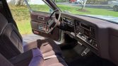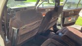 The interior features bench seats upholstered in burgundy cloth with matching door panels and carpets. Appointments include cruise control, air conditioning, a tilt steering wheel, power-adjustable front seats, power aLessories, a remote trunk release, remote-control outside mirrors, an AM/FM/cassette stereo, woodgrain trim, and vinyl floor mats.