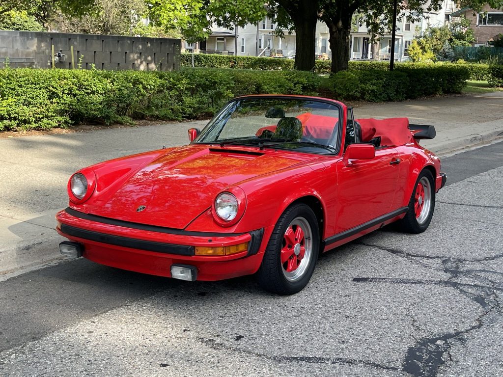 This 1983 Porsche 911SC cabriolet was purchased new by the current owner and is finished in red over black. Power is supplied by a 3.0-liter flat-six paired with a five-speed manual transaxle, and equipment includes a color-matched convertible top, a “tea tray” rear spoiler, red-painted 16″ Fuchs wheels,  air conditioning, and an aftermarket audio system.