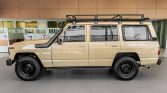 The exterior is said to have been previously repainted in its current shade of beige with wrinkle black-finished bumpers. Additional equipment includes rock sliders, an intake snorkel, front bumper-mounted driving lights, a roof rack, and dual side mirrors.
