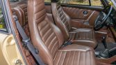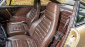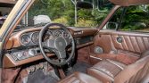 The cabin features seats upholstered in brown leather joined by matching door panels and carpets. Amenities include a sunroof, air conditioning, power windows, and an aftermarket Alpine stereo. The driver’s side window switch was recently replaced.
