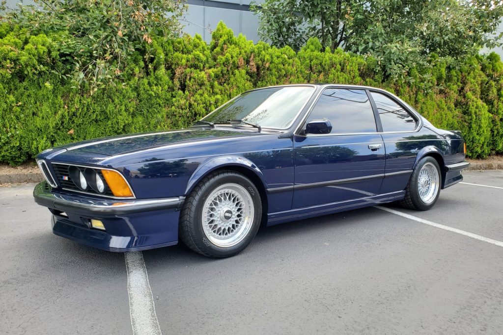 This 1985 BMW M635CSi is a European-market example that was imported into the United States under previous ownership and was acquired by the seller in 2020. The car is finished in blue over Anthracite bison leather and is powered by a 3.5-liter inline-six mated to a five-speed manual transmission and a limited-slip differential. Equipment includes an M Technic body kit, 16″ BBS RS wheels, modified brakes, Dinan Stage 4 suspension, air conditioning, an Alpine CD stereo, and front sport seats.
