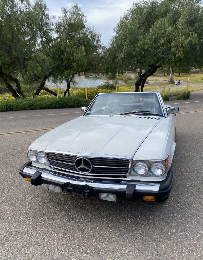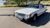 This 1985 Mercedes-Benz 380SL is finished in Classic White over Brazil MB-Tex upholstery and is powered by a 3.8-liter V8 paired with a four-speed automatic transmission. Features include a removable body-color hardtop, a black soft top, automatic climate control, power windows, cruise control, front fog lights, 14″ alloy wheels, and anti-lock brakes. The car was acquired by the seller in California in early 2021, and it now shows just under 65k miles.