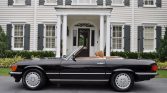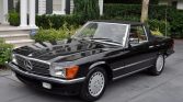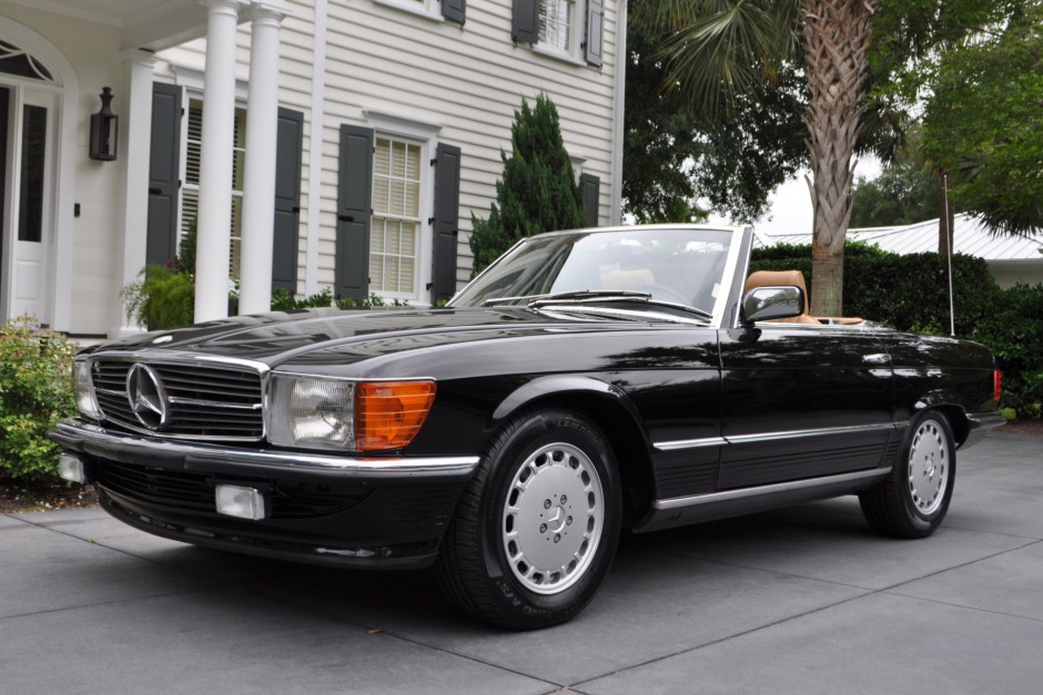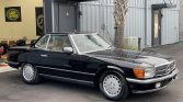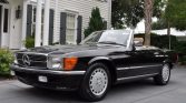 This 1985 Mercedes-Benz 500SL is a European-market example that is finished in black over tan leather. The car is powered by a 5.0-liter V8 paired with a four-speed automatic transmission and features a color-matched removable hardtop, a black soft top, 15″ Gullideckel wheels, a rear spoiler, fog lights, automatic climate control, cruise control, and a Becker AM/FM cassette stereo. The seller acquired the car in 2020 and subsequent service included replacing the tires, shifter bushings, gaskets, and…