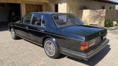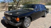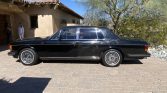 This 1985 Rolls-Royce Silver Spirit is finished in black over tan leather and is powered by a 6.75-liter V8 paired with a three-speed automatic transmission. The car has reportedly resided in California since the 1990s, and equipment includes 15″ steel wheels with chrome covers, air conditioning, an AM/FM cassette stereo, a six-disc CD changer, power windows, and wood trim.