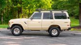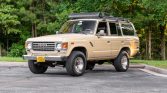This 1985 Toyota Land Cruiser FJ60 is finished in beige over brown cloth and vinyl and is powered by a 4.2-liter inline-six mated to a four-speed manual transmission and a dual-range transfer case. Modifications consists of a Man A Fre ceramic-coated header, Old Man Emu 4″ lift kit, ARB roof rack, Kenwood stereo, LED lights, and 15″ American Racing wheels. The truck spent time in California and Virginia prior to the seller’s acquisition in 2021.