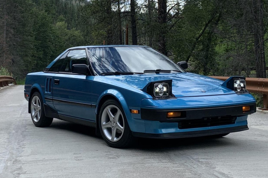 …This 1985 Toyota MR2 is finished in Light Blue Metallic over black and blue cloth upholstery, and is powered by a 1.6-liter inline-four paired with a five-speed manual transaxle. Additional equipment includes pop-up headlights with LED bulbs, 15″ Moda alloy wheels, and an Alpine CD stereo with an aftermarket amplifier and a Yamaha subwoofer. The car spent time in Oregon and was later relocated to Washington, where it was acquired two years ago by the seller.
