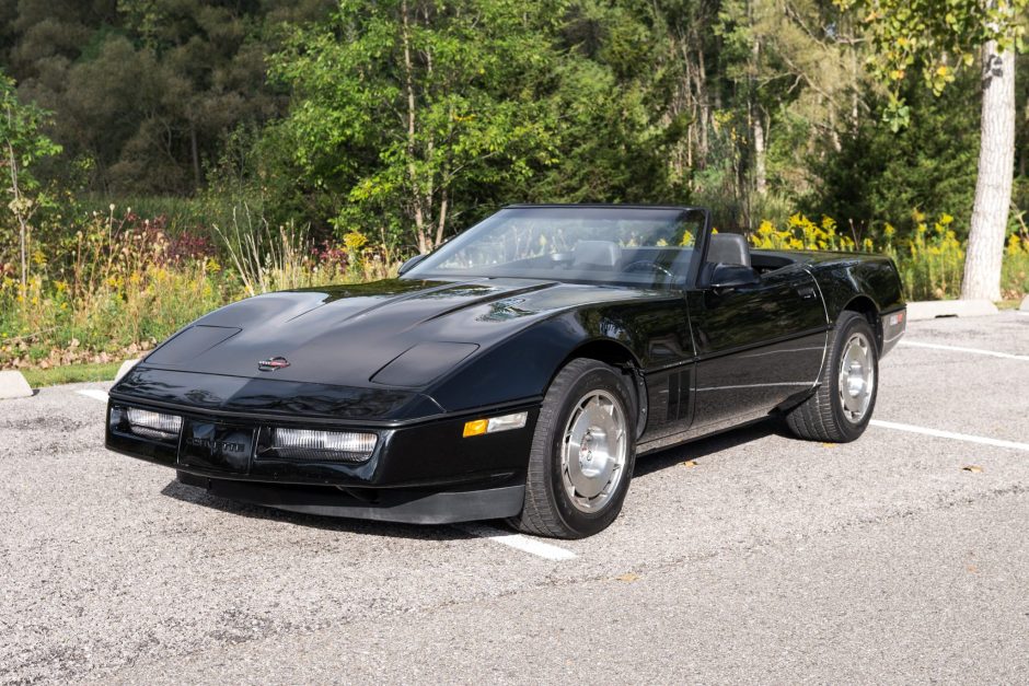 This 1986 Chevrolet Corvette convertible was initially delivered to Buff Whelan Chevrolet in Sterling Heights, Michigan, and was reportedly purchased by the seller from its first owner in 1988. The car is finished in black with Graphite leather upholstery and powered by a 5.7-liter V8 paired with a Doug Nash “4+3″ manual transmission. Features include a black convertible top, 16” turbine-style wheels, pop-up headlights, power-adjustable seats, air conditioning, cruise control, an onboard computer, and a Delco-Bose sound…