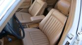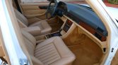 Palomino leather (274) covers the seating surfaces, arm rest, and door panels, while wood trim accents the cabin. Amenities include automatic climate control, a Becker Grand Prix cassette stereo, cruise control, and power-adjustable front seats. The air-conditioning system was recharged in 2020, and the radio was also reconditioned.