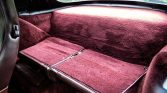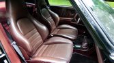 The cabin features power-adjustable front sport seats trimmed in burgundy leather with a matching dashboard, carpets, and door panels. Equipment includes electric windows and an Eclipse CD stereo connected to aftermarket speakers. The air conditioning is inoperative, and noted flaws include wear on the steering wheel rim and on the left side of the dashboard, left-side driver’s seat bolster, and right-side passenger’s seat bolster. Both horns were replaced in April 2021.
