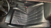 The interior features sport seats upholstered in black leather along with matching door panels and gray carpets. Appointments include power windows, air conditioning, an alarm system, central locking, a replacement shift knob, dashboard and rear deck covers, and an Alpine CD player with a JVC subwoofer. The removed stock radio is included in the sale.