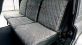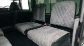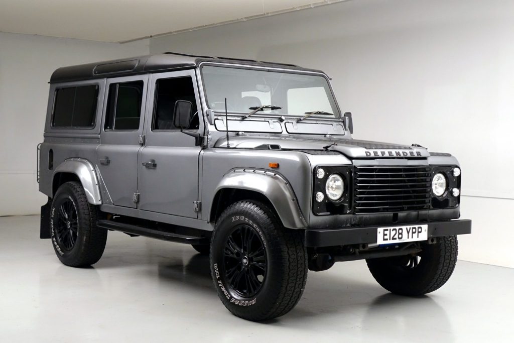 This 1987 Land Rover 110 was imported from the United Kingdom in late 2015 and has since been refinished in silver over a refreshed diamond-stitched gray interior. Power comes from a fuel-injected 3.5-liter V8 paired with a five-speed manual transmission and a dual-range transfer case, and features include a black roof, a rear ladder, a rear-mounted spare tire, fender flares, aftermarket 18″ wheels, seating for nine oLupants with four rear jump seats, an armrest console, and a…
