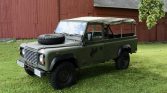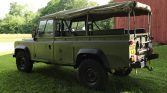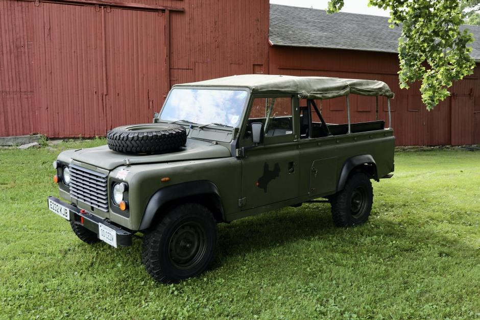 This 1987 Land Rover 110 is a right-hand-drive example that spent time in the UK before it was imported to the US in 2015, and it was subsequently acquired by the seller’s father. Finished in green over black upholstery, it is powered by a 2.25-liter inline-four mated to a five-speed manual transmission and dual-range transfer case. Features include a locking center differential, a canvas soft top, a folding windshield, quarter panel storage compartments, NATO-style 16″ wheels, and inward-facing rear jump seats. Work performed in preparation for the sale included an oil change and replacement of the transmission and differential fluids.