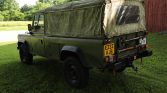 Steel 16″ NATO wheels are finished in green and mounted with Michelin all-terrain tires, and the matching wheel with a replacement Michelin tire is affixed to the hood.