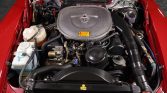 The car is finished in Signal Red (568) with matching removable hardtop and a black convertible top. Exterior equipment includes fog lamps, a power antenna, and chrome-trimmed bumpers and mirrors.