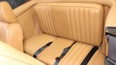 The cabin features Palomino leather upholstery on the seats as well as matching door panels and carpets, a black upper dashboard, and burl wood trim. Equipment includes automatic climate control, an outside temperature indicator, power windows, central locking, tan embroidered floor mats, and a Becker cassette radio.
