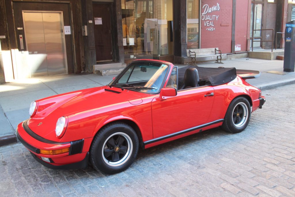 This 1987 Porsche 911 Carrera cabriolet was sold new by Essex Sports Cars of Maplewood, New Jersey, and is said to have remained registered with two owners in New Jersey and New York prior to the seller’s acquisition in 2021. The car is finished in red over black leather, and power comes from a 3.2-liter flat-six mated to a five-speed manual transaxle with a limited-slip differential. Additional equipment includes a black soft top, 15″ Fuchs wheels, a…
