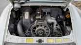 This 1987 Porsche 911 Carrera coupe is powered by a 3.2-liter flat-six paired with a G50 five-speed manual transaxle and is finished in white over black leather. Factory equipment consists of a sliding sunroof, power-adjustable front seats, and a rear-window wiper, while modifications include 964-style front and rear bumpers, a MOMO leather-wrapped sport steering wheel, a Panasonic CD stereo, and 17″ Cup-style wheels. Service under current ownership included replacing the clutch, installing a stainless-steel exhaust system, and…
