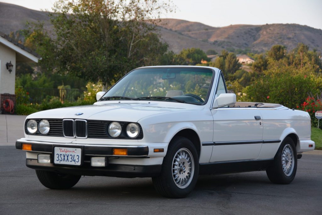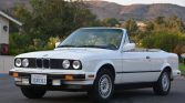 This 1988 BMW 325i convertible is finished in Alpine White over tan vinyl upholstery and is powered by a 2.5-liter inline-six mated to a five-speed manual transmission and a limited-slip differential. Additional equipment includes a black convertible soft top, fog lights, 14″ alloy wheels, an on-board computer, heated front seats, air conditioning, and power accessories. Recent service included converting the air conditioning system to R-134a refrigerant, replacement of the front struts and radiator, as well as an oil change.